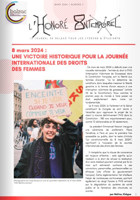Mais ce CDI, ce sont aussi des professeurs-documentalistes engagées, qui proposent des rencontres avec des auteurs contemporains et accompagnent les désirs d’écriture des jeunes. Ainsi, des étudiantes de Khâgne se sont investies cette année, en collaboration avec des lycéens et sous la houlette bienveillante d’Annabelle Takam, enseignante au CDI, pour faire naître en mars 2024 un nouveau journal du Lycée : L’Honoré intemporel, lisible en ligne. Mélina et Lylia y ont notamment présenté diverses sorties des prépas cette année (p.4-5), sur le plateau de Saclay en géographie, au théâtre, dans les coulisses de l’Opéra Bastille.